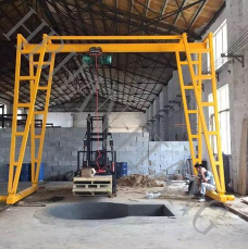 具體使用方法為:在污水管道上方放置一臺固定式的小型龍門吊,將鋼絲繩電動葫蘆固定在龍門吊的工字鋼軌道上,再連接上臨時發電系統,將成筐的污物懸掛到電動葫蘆下吊鉤上,遙控電動葫蘆的手柄,按動上升按鈕,使之緩緩上升到地面上,隨后地面上的工作人員再將污物傾倒到垃圾車上。